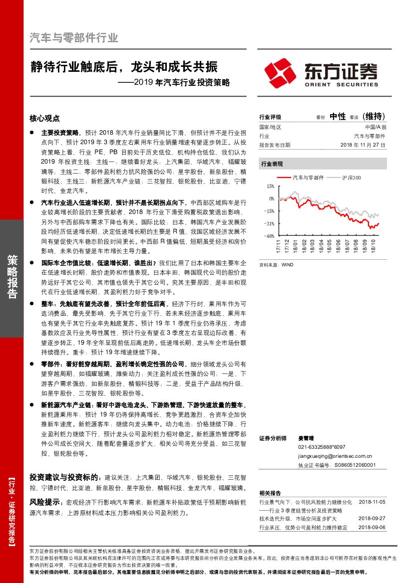 东方证券:2019年汽车行业投资策略:静待行业触底后,龙头和成长共振.pdf