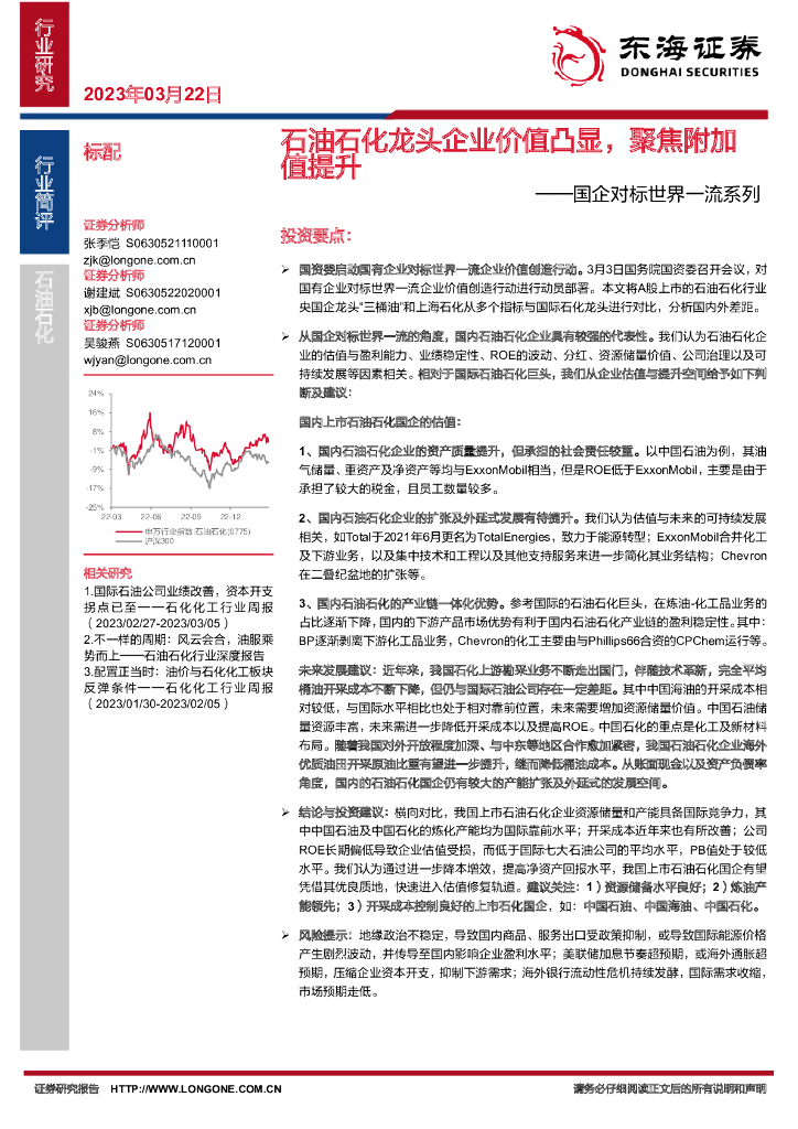东海证券:石油石化:国企对标世界一流系列-石油石化龙头企业价值凸显,聚焦附加值提升.pdf