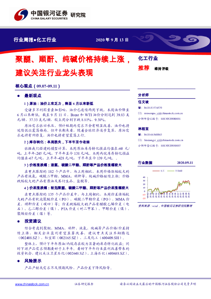 中国银河:化工行业周报:聚醚、顺酐、纯碱价格持续上涨,建议关注行业龙头表现.pdf