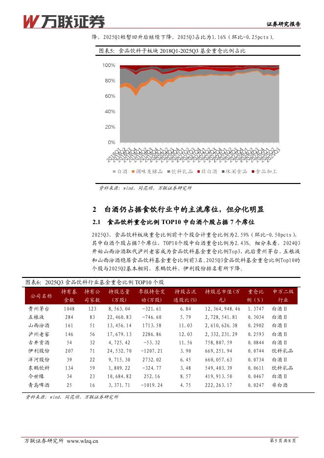 万联证券:食品饮料行业2025Q3基金持仓分析:食饮重仓比例大幅下降,其中白酒重仓比例持续萎缩.pdf