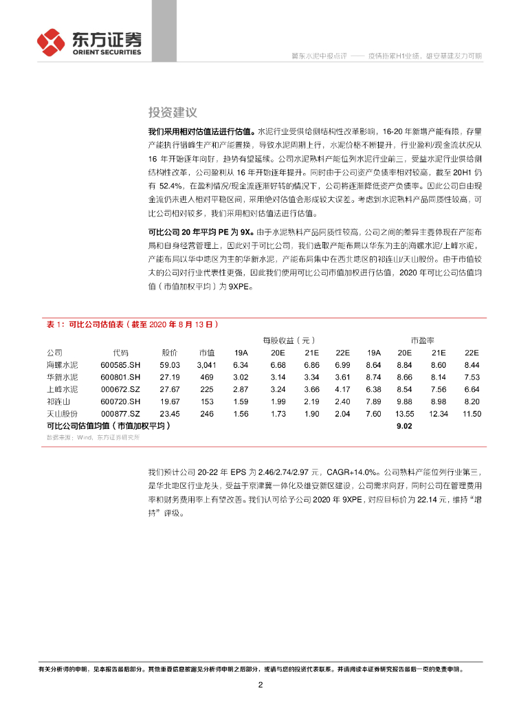 东方证券:冀东水泥(000401)-疫情拖累H1业绩,雄安基建发力可期.pdf