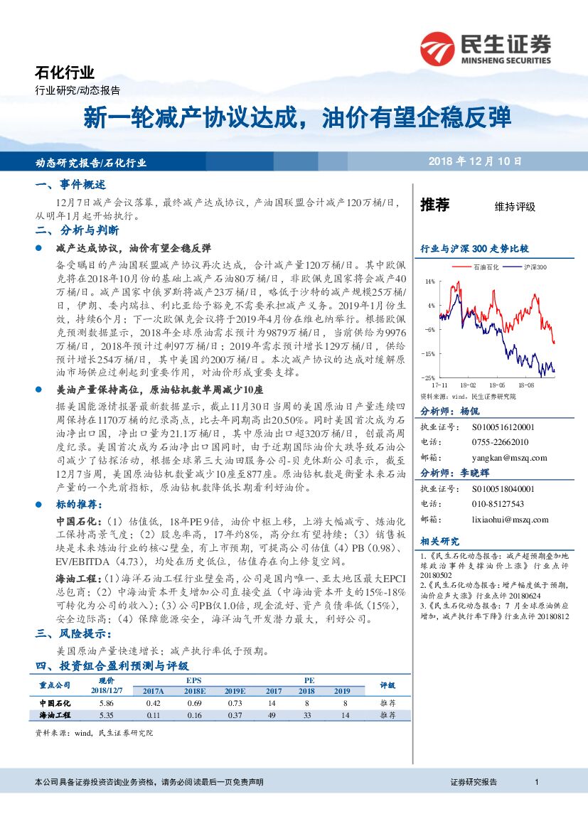 民生证券:石化行业:新一轮减产协议达成,油价有望企稳反弹.pdf