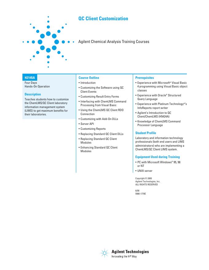 Agilent QC Client Customization (H2145A) 数据手册.pdf