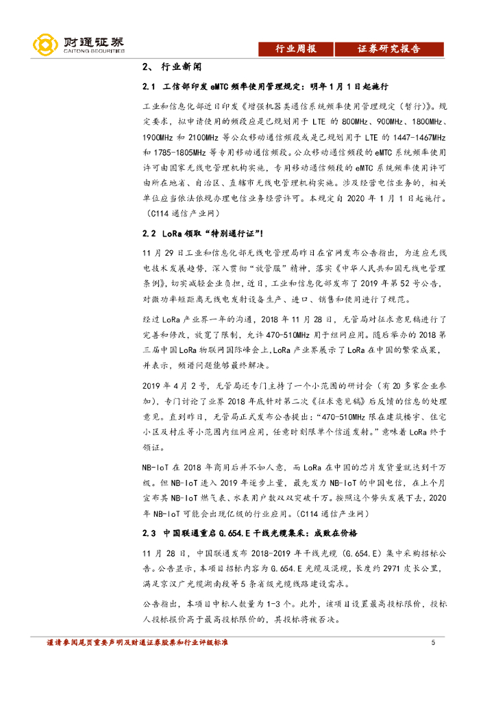 财通证券:通信行业周报:工信部印发eMTC频率使用规定,运营商携号转网正式启动.pdf