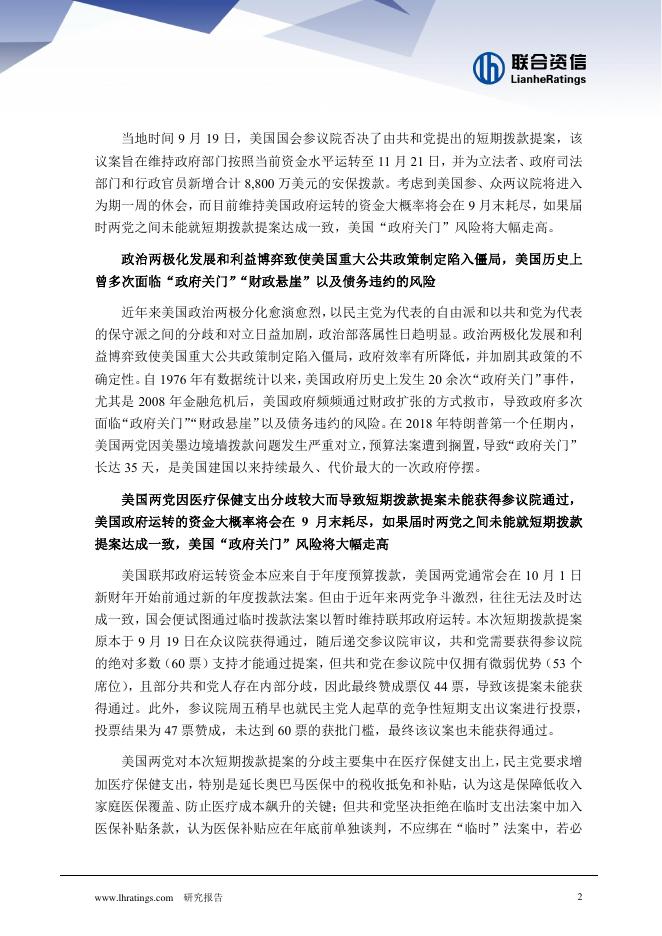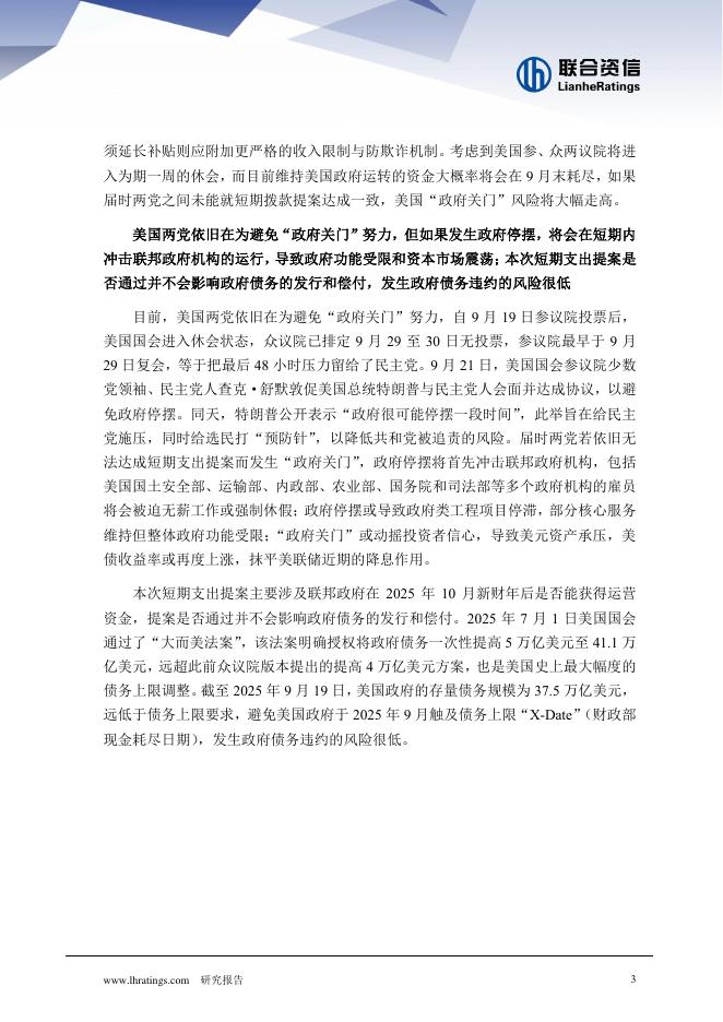 联合资信:2025年短期拨款提案参议院受阻,美国“政府关门”风险再起.pdf