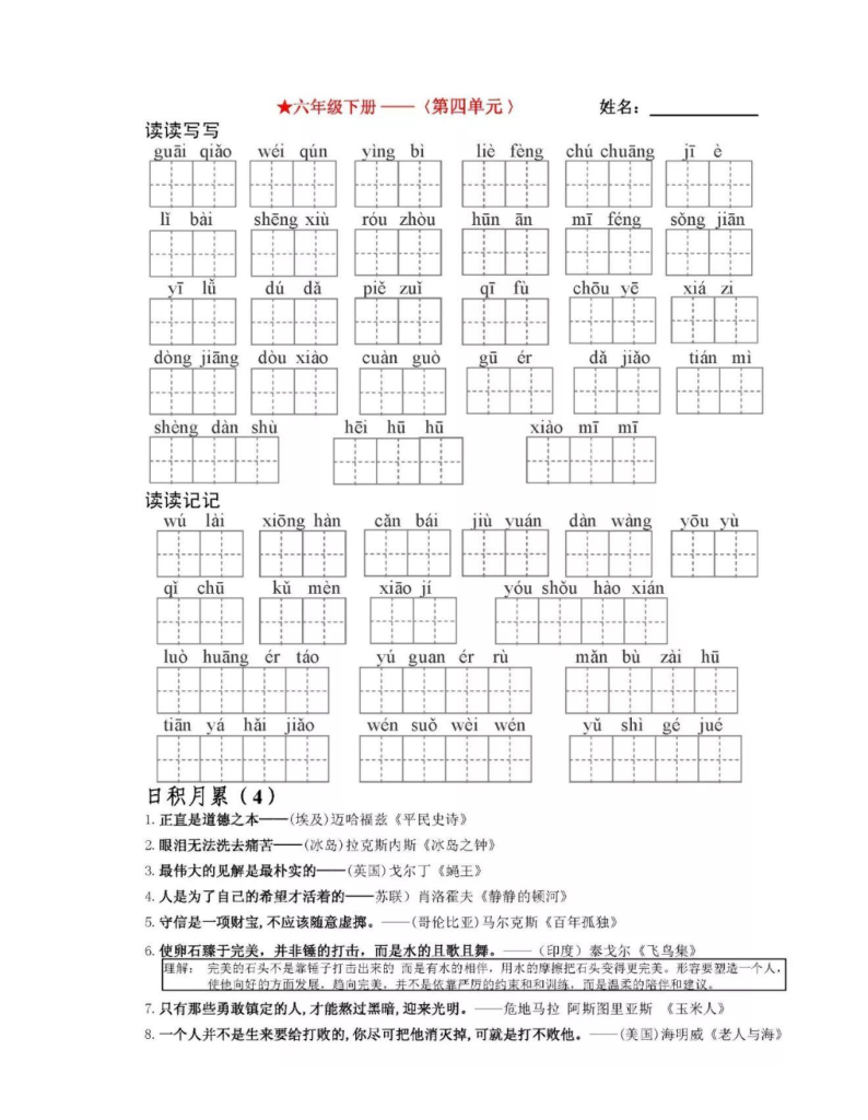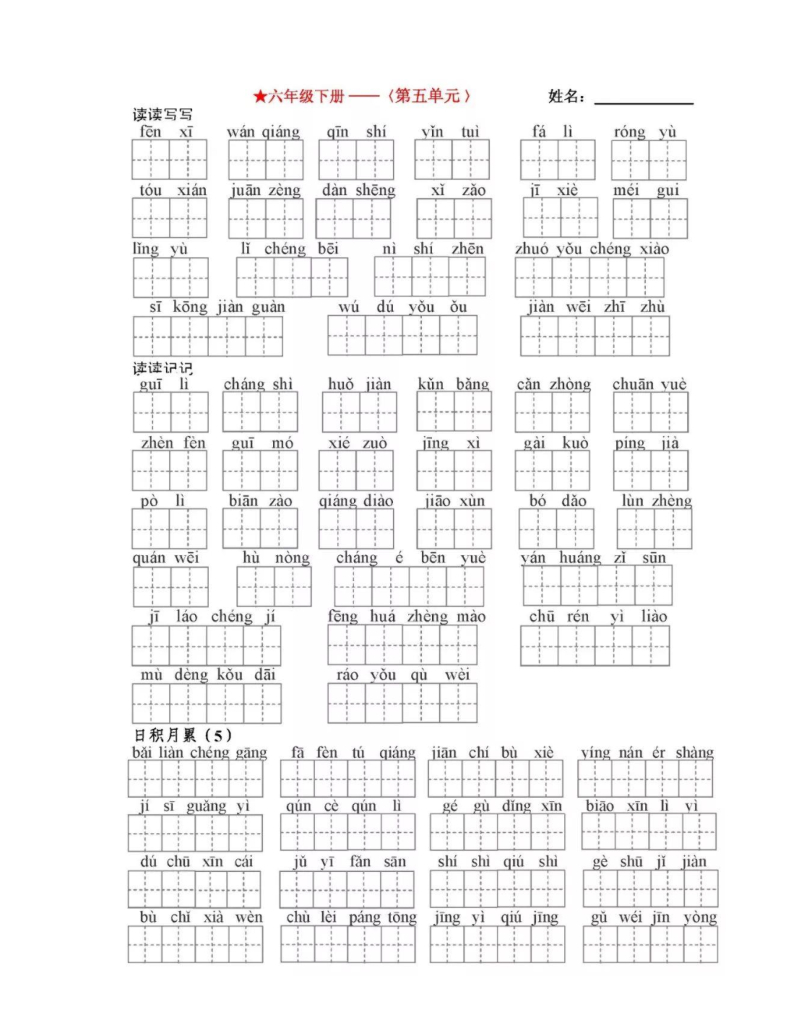 统编版语文6年级下全册看拼音写词语(田字格).pdf