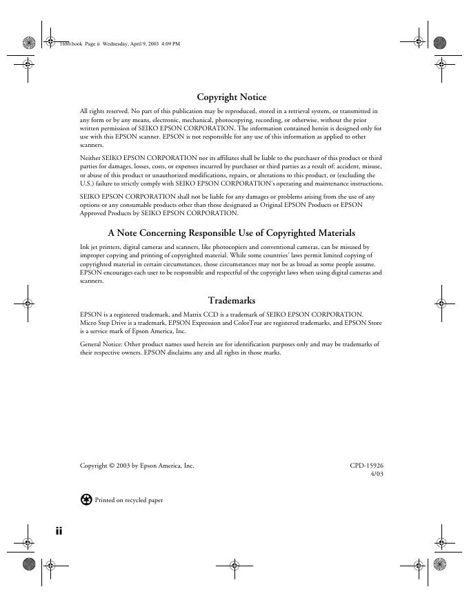 EPSON EXPRESSION 1680 Color Graphics Scanner 用户手册.pdf