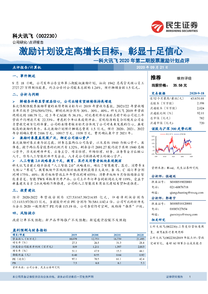 民生证券:科大讯飞2020年第二期股票激励计划点评:激励计划设定高增长目标,彰显十足信心.pdf