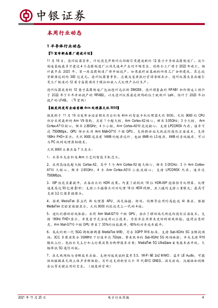 中银证券:电子行业周报:TI宣布新厂建设计划,联发科发布4nm处理器.pdf