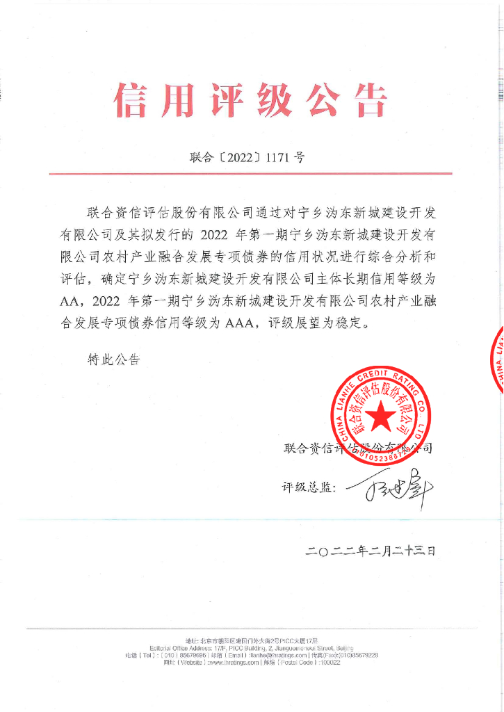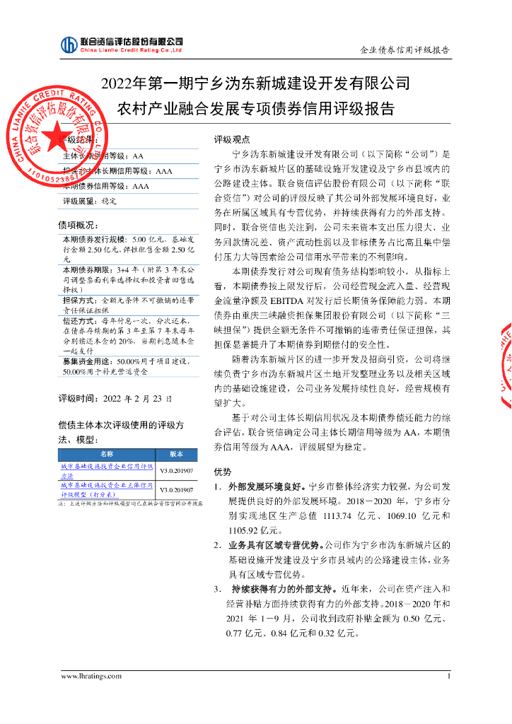 联合资信:2022年第一期宁乡沩东新城建设开发有限公司农村产业融合发展专项债券信用评级报告.pdf