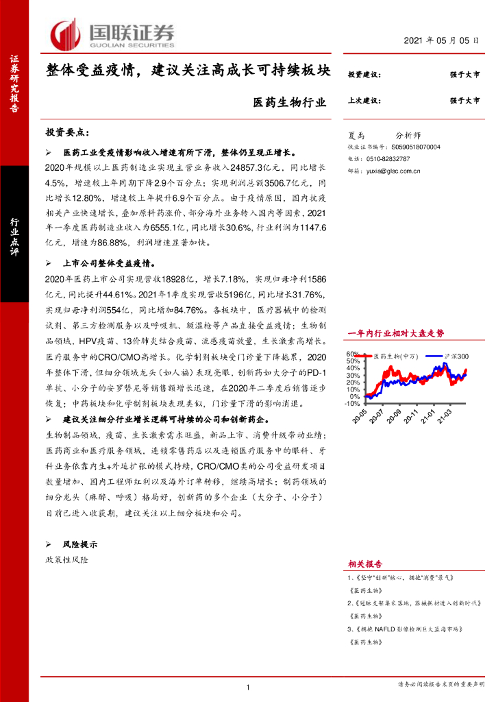 国联证券:医药生物行业:整体受益疫情,建议关注高成长可持续板块.pdf