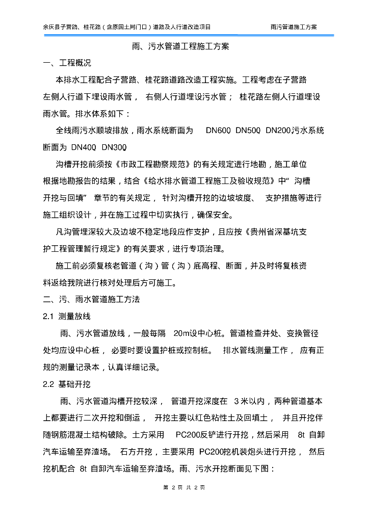 余庆县子营路、桂花路道路雨、污水管道施工方案.pdf