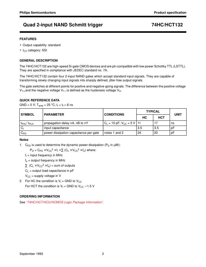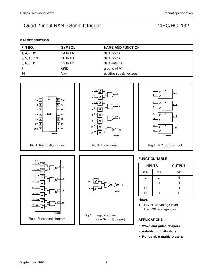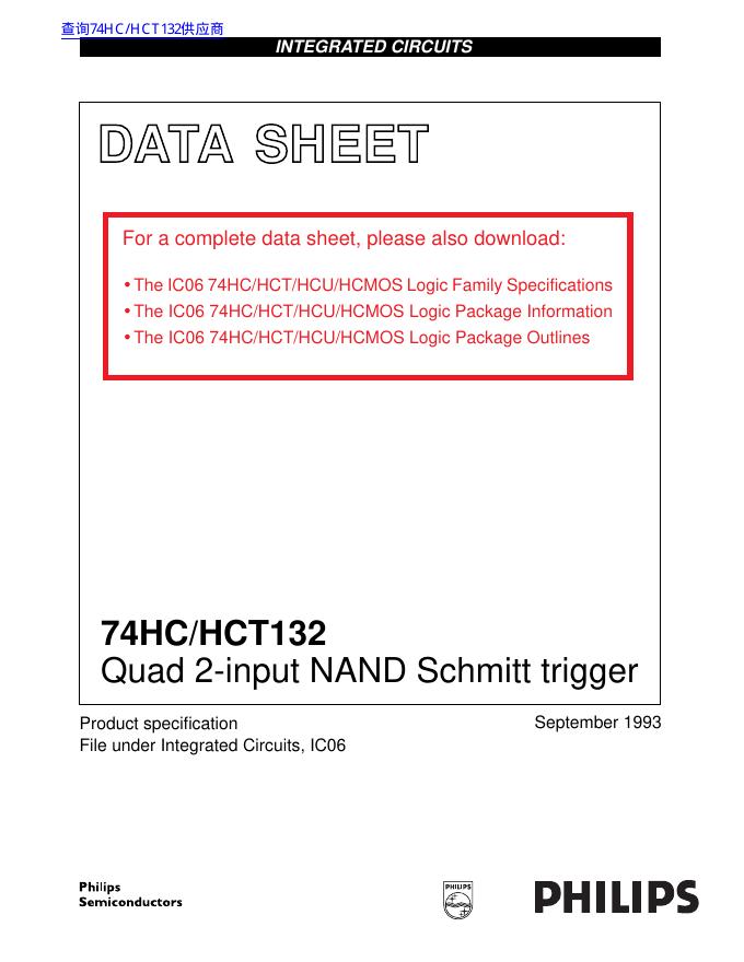 PHILIPS 74HC/HCT132 Quad 2-input NAND Schmitt trigger 数据手册.pdf