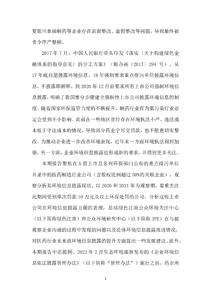 绿色江南:上市药企环境信息披露有所改善丨医药制造行业公司环境信披观察报告.pdf