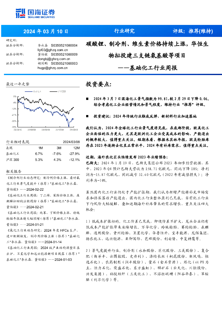 国海证券:基础化工行业周报:碳酸锂、制冷剂、维生素价格持续上涨,华恒生物拟投建三支链氨基酸等项目.pdf