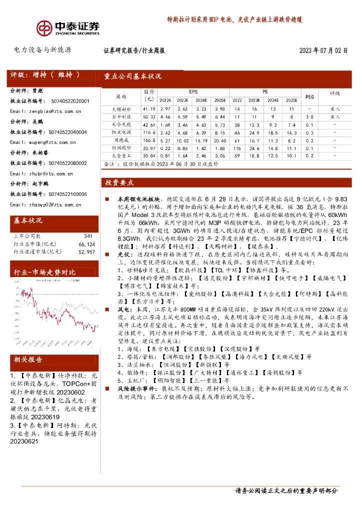 中泰证券:电力设备与新能源行业周报:特斯拉计划采用M3P电池,光伏产业链上游跌价趋缓.pdf