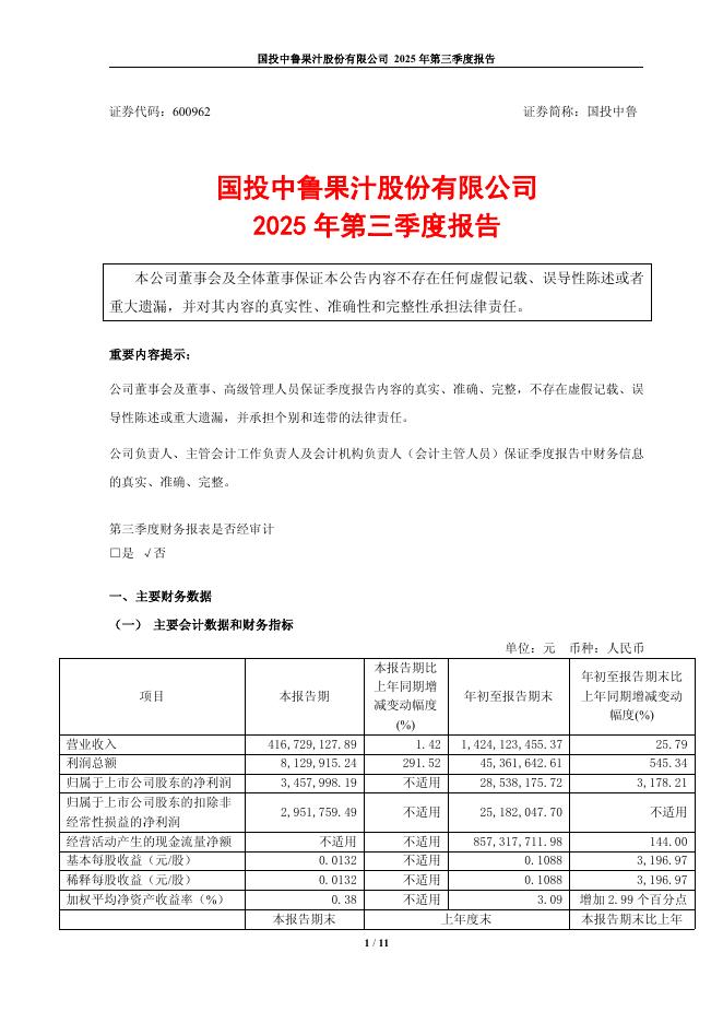 600962-国投中鲁:国投中鲁2025年第三季度报告.pdf