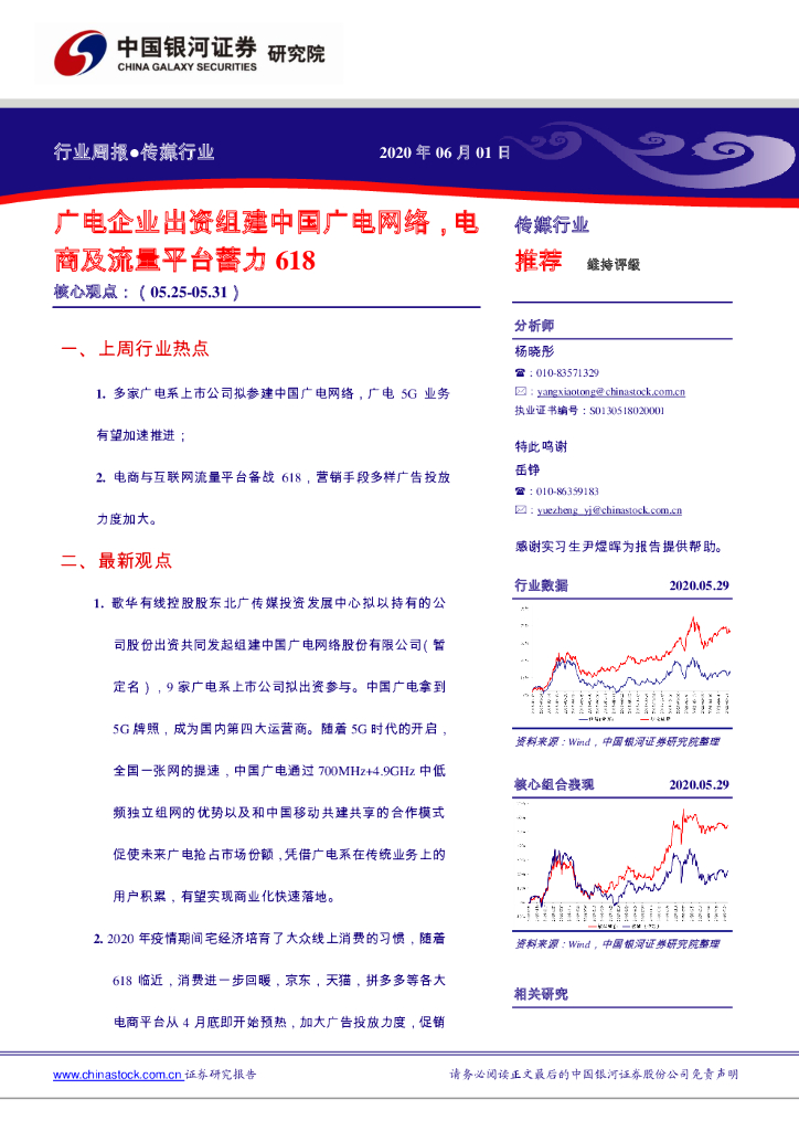 中国银河:传媒行业周报:广电企业出资组建中国广电网络,电商及流量平台蓄力618.pdf