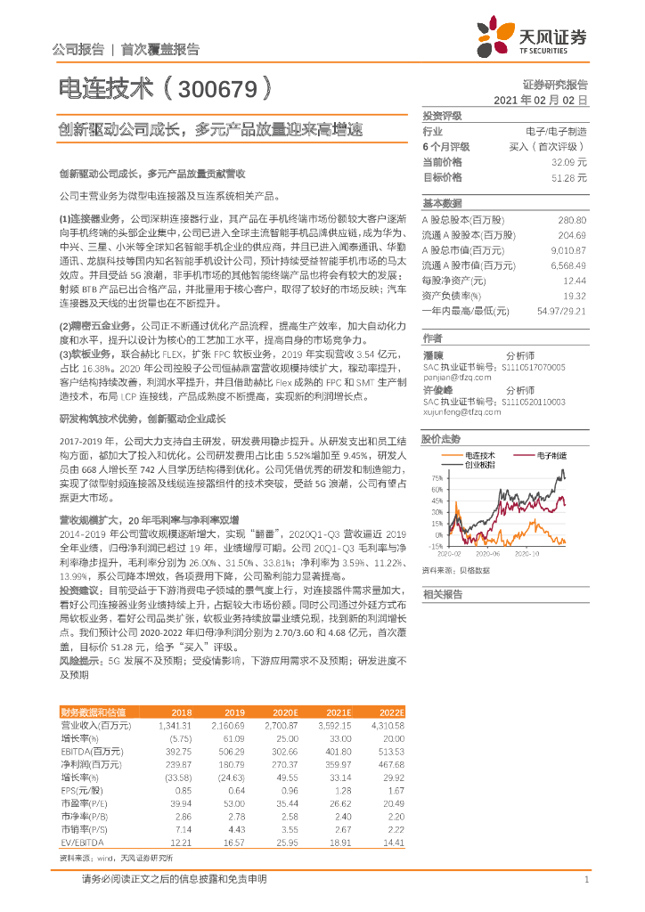 天风证券:电连技术(300679)-创新驱动公司成长,多元产品放量迎来高增速.pdf