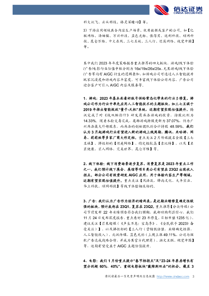 信达证券:传媒互联网及海外周观点:百度发布“文心一言”,重视国内AIGC产业链市场机会.pdf