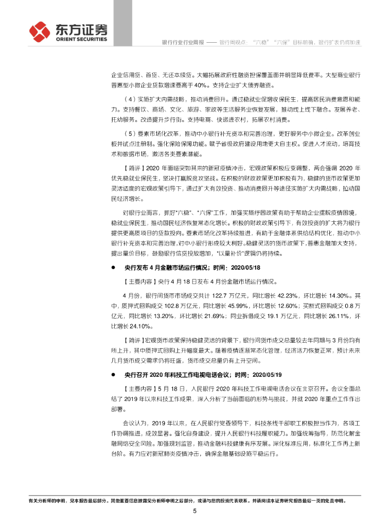 东方证券:银行周观点:“六稳”“六保”目标明确,银行扩表仍将加速.pdf