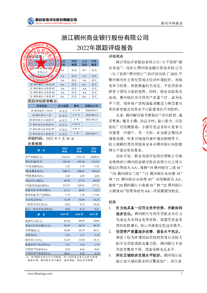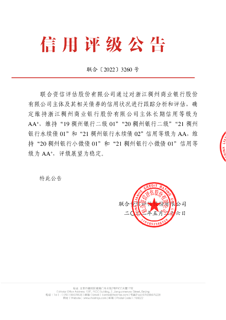 联合资信:浙江稠州商业银行股份有限公司2022年跟踪评级报告.pdf