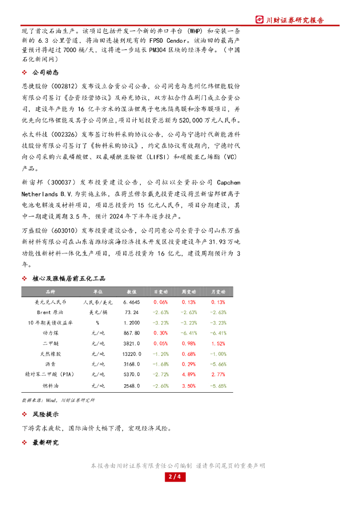 川财证券:化工行业日报:川财研究能源及公用事业产业链核心数据跟踪日报.pdf