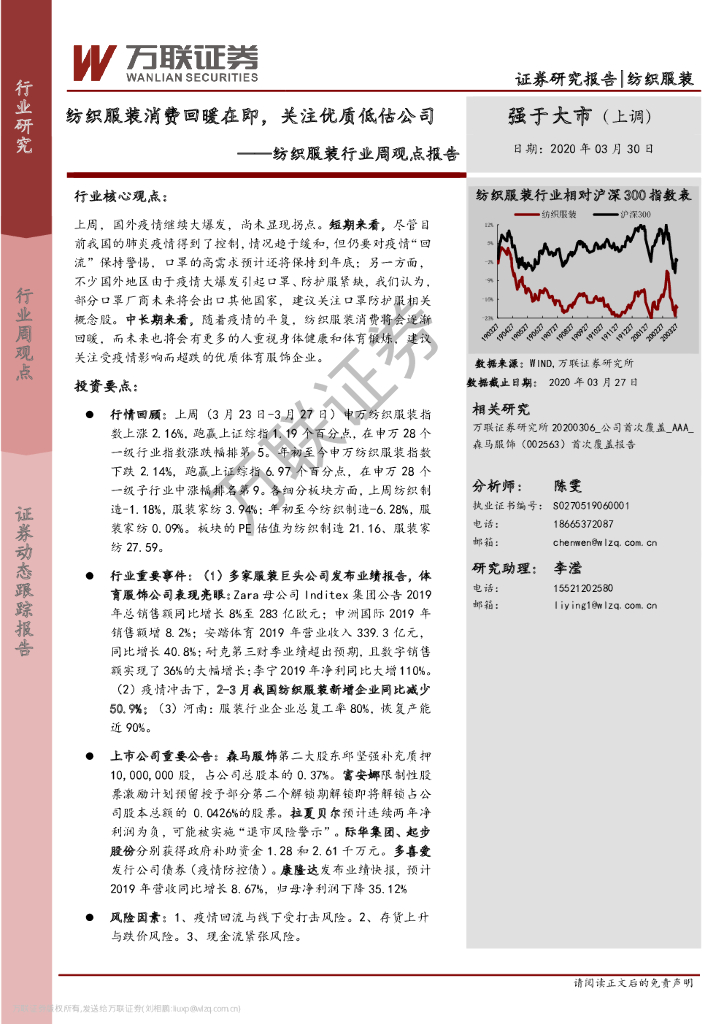 万联证券:纺织服装行业周观点报告:纺织服装消费回暖在即,关注优质低估公司.pdf