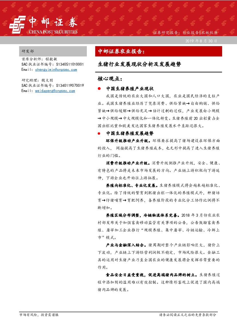 中邮证券:农业报告:生猪行业发展现状分析及发展趋势.pdf