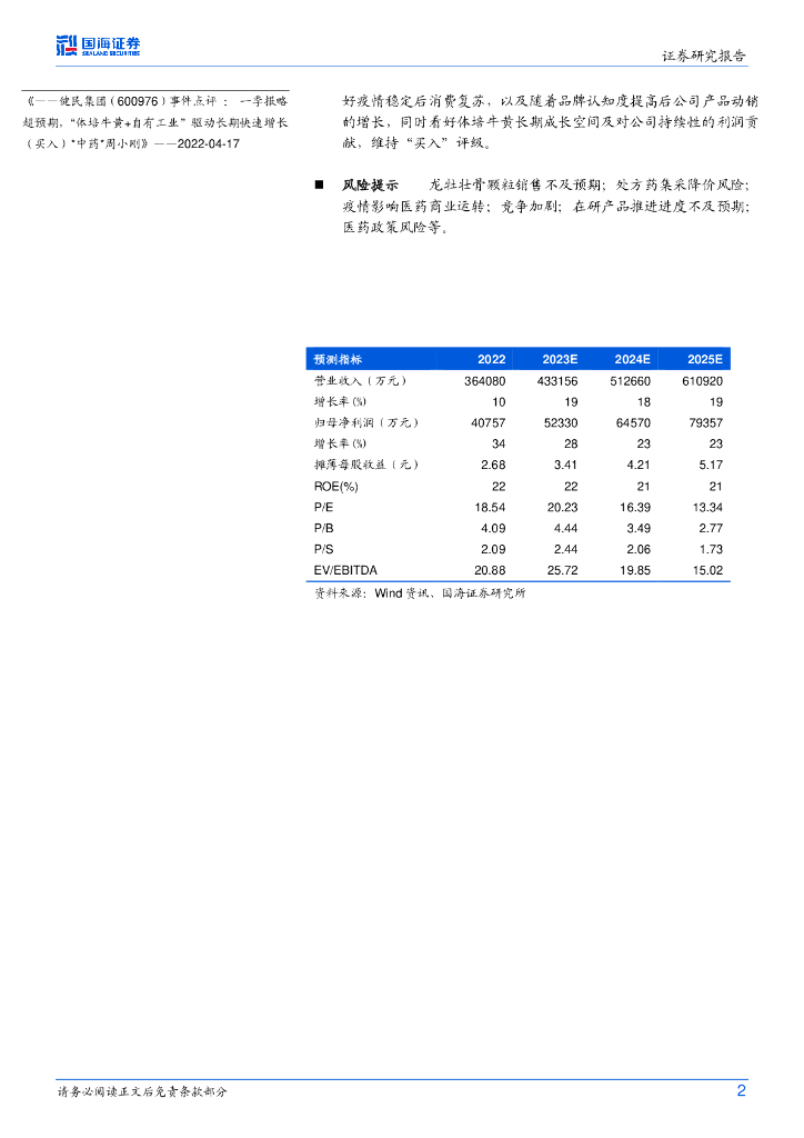 国海证券:健民集团(600976)-点评报告:自有工业增长稳健,看好公司长期业绩持续性.pdf