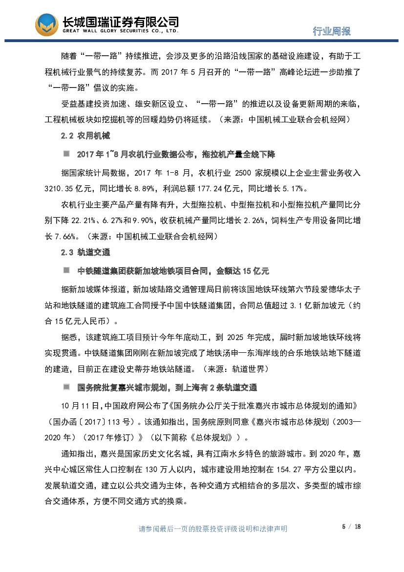 长城国瑞证券:机械设备行业周报2017年第39期(总第61期):挖掘机前三季度销量破十万台,中铁隧道获海外订单.pdf