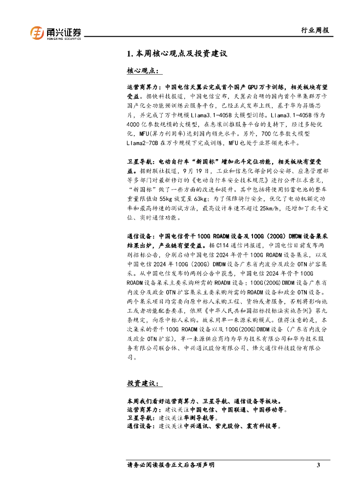 甬兴证券:通信行业周报:天翼云完成首个国产GPU万卡训练,电动自行车“新国标”增加北斗定位功能.pdf