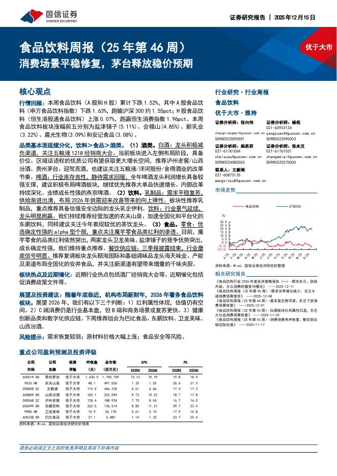 国信证券:食品饮料行业周报(25年第46周):消费场景平稳修复,茅台释放稳价预期.pdf