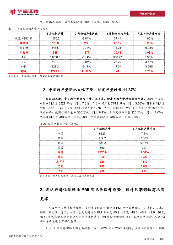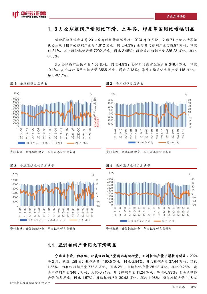 华宝证券:钢铁行业点评报告:3月全球粗钢产量同比下滑,印度产量高增长.pdf