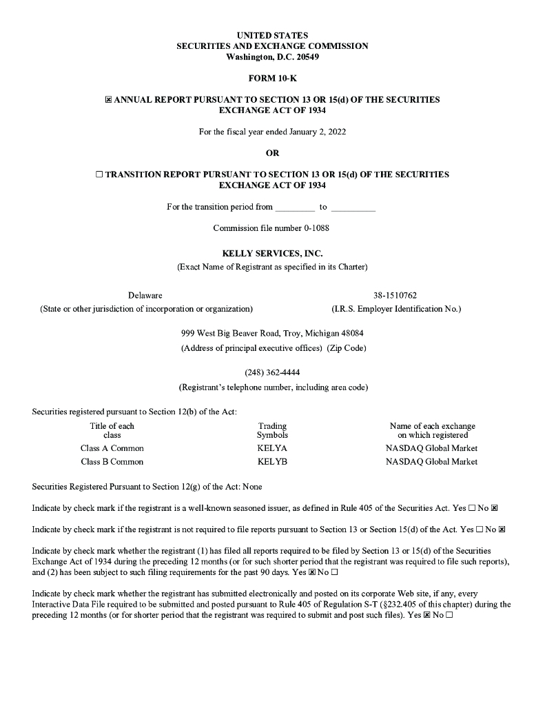 Kelly Services Inc.(KELYA)2021财年年度报告(英文版).pdf