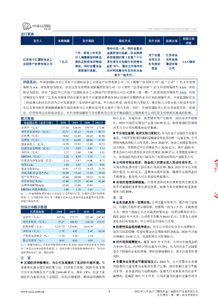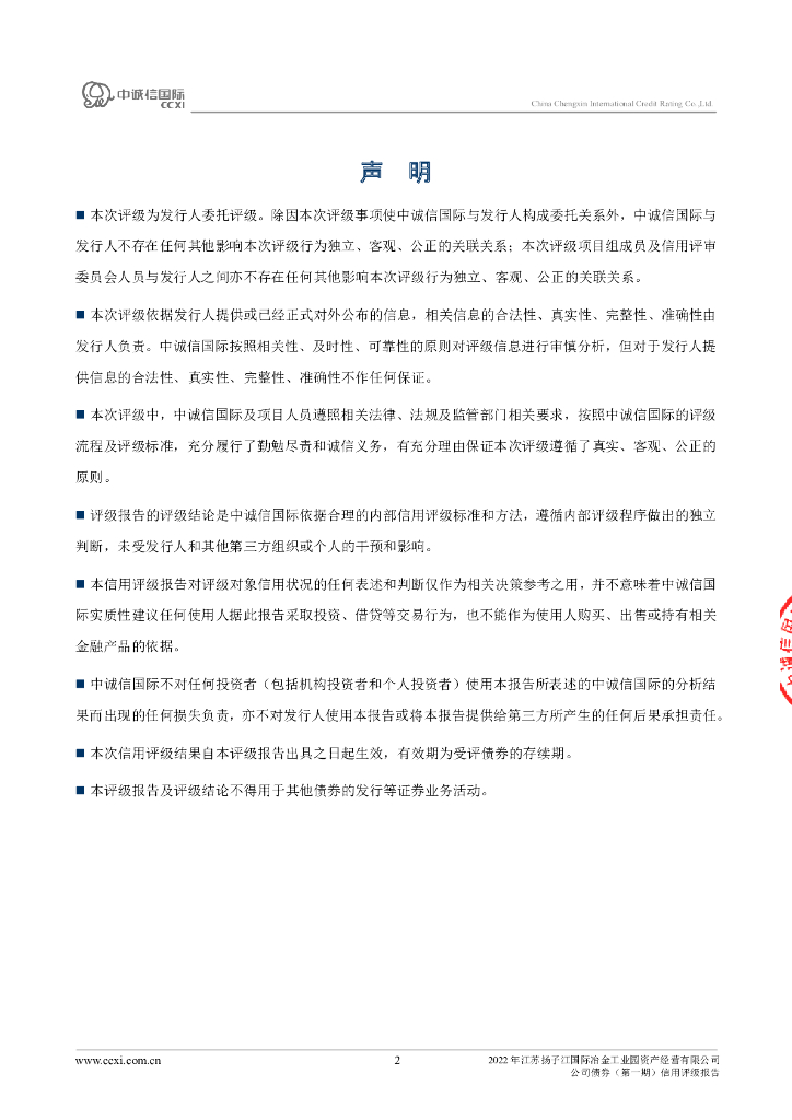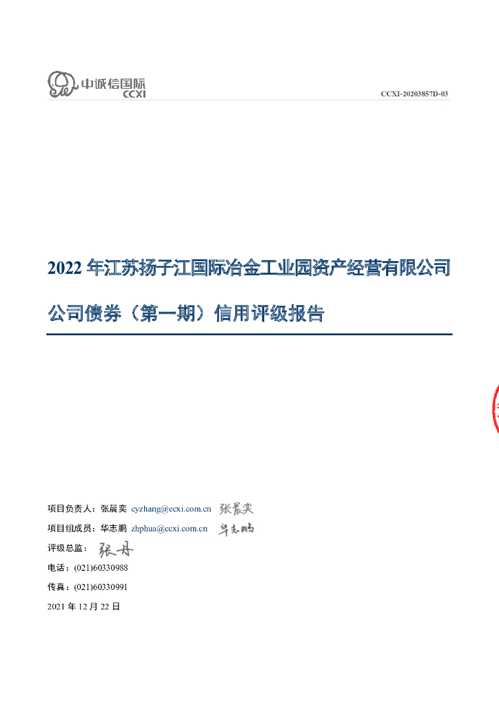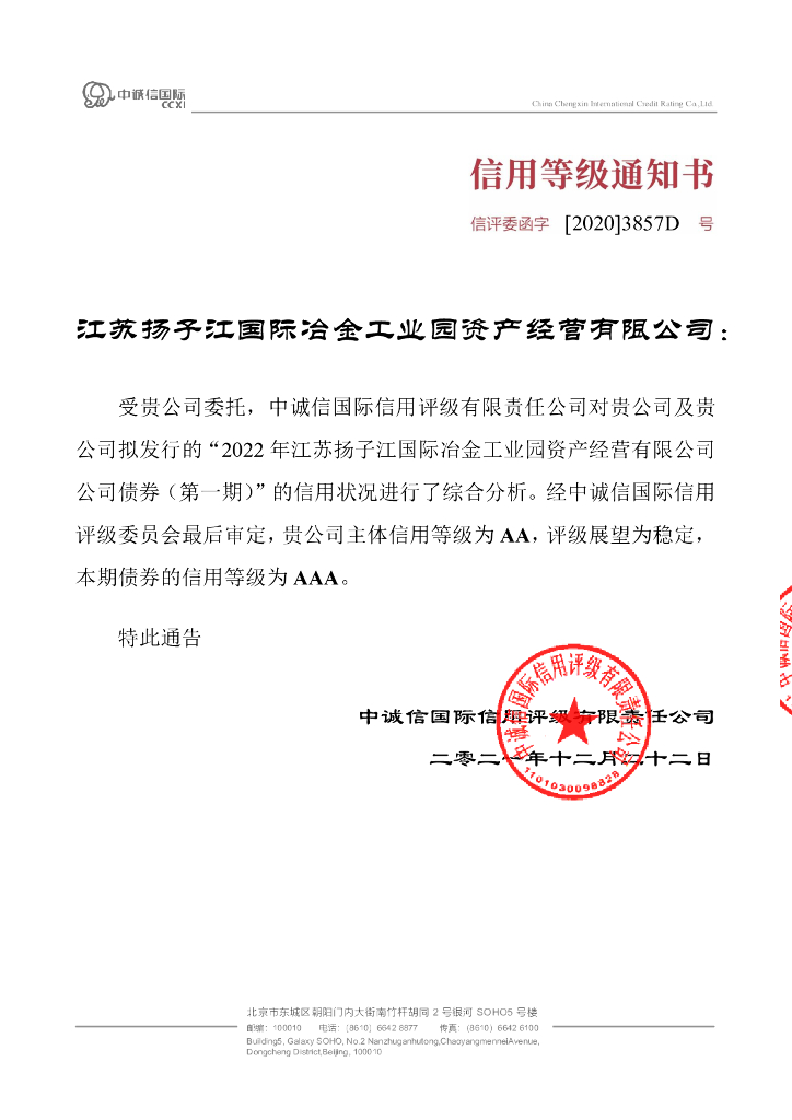 中诚信:2022年江苏扬子江国际冶金工业园资产经营有限公司公司债券(第一期)信用评级报告.pdf