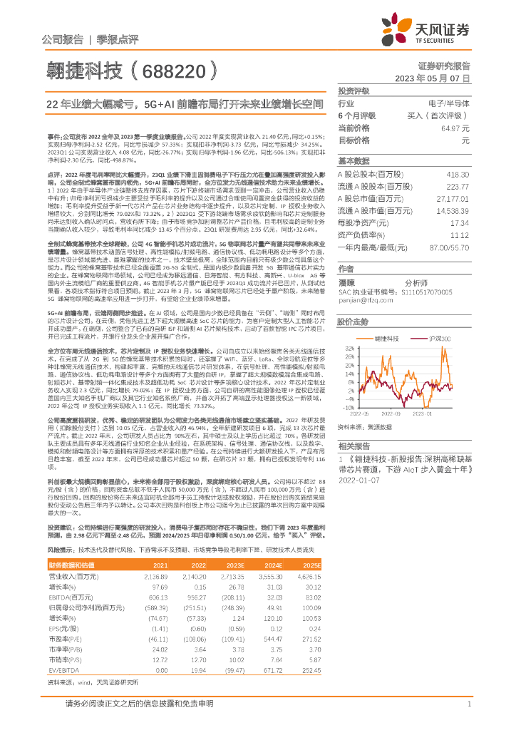 天风证券:翱捷科技(688220)-22年业绩大幅减亏,5G+AI前瞻布局打开未来业绩增长空间.pdf