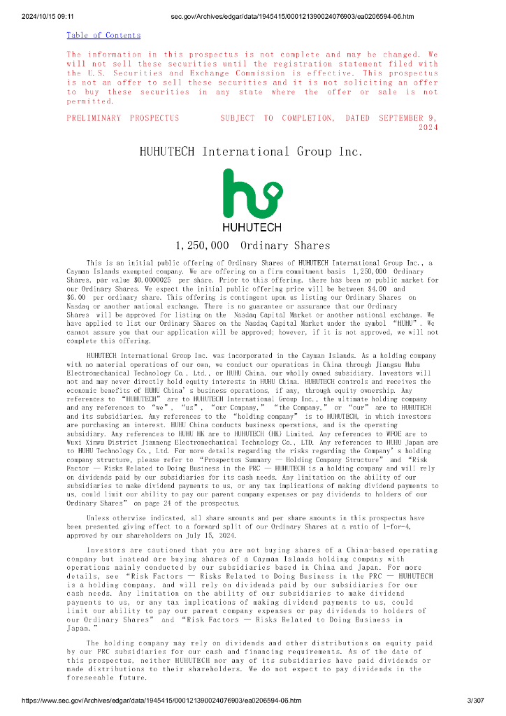 HUHUTECH International Group Inc.美股纳斯达克IPO上市招股说明书.pdf