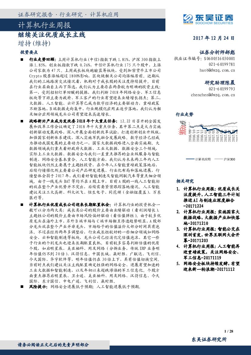 东吴证券:计算机行业周报:继续关注优质成长主线.pdf