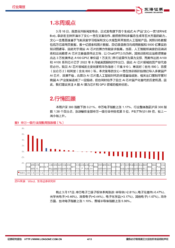 东海证券:电子行业周报:百度发布类ChatGPT产品文心一言,关注AI芯片领域机遇.pdf