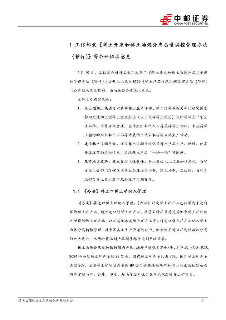 中邮证券:有色金属:工信部拟出台稀土开采新规,稀土价格或开启新一轮上涨.pdf