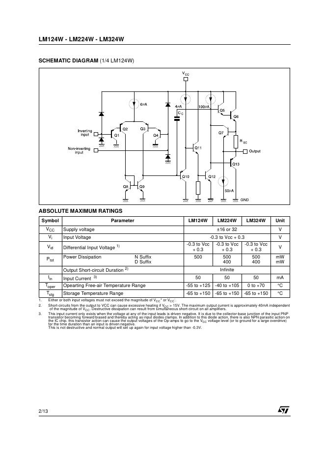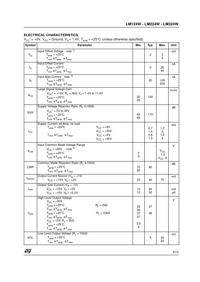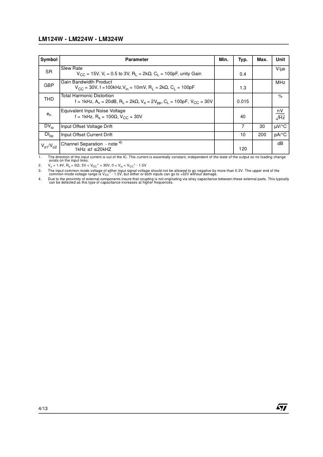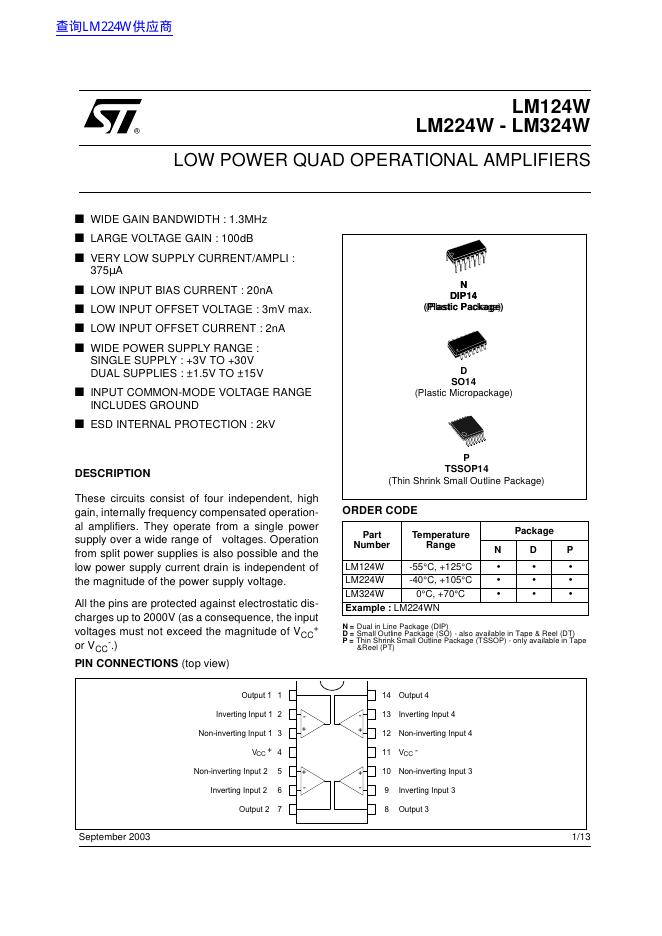 ST LM124W LM224W - LM324W LOW POWER QUAD OPERATIONAL AMPLIFIERS 数据手册.pdf