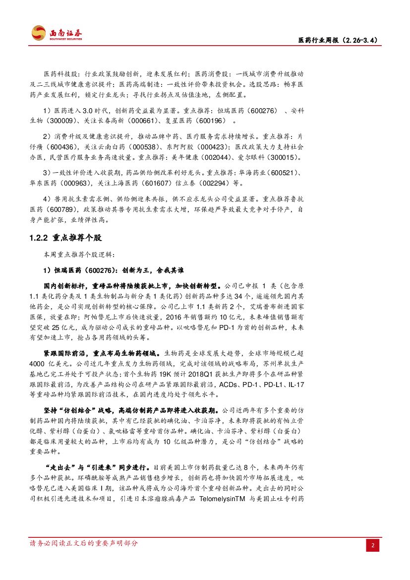 西南证券:医药行业周报:聚焦子行业龙头,看好恒瑞医药、安科生物、美年健康等.pdf