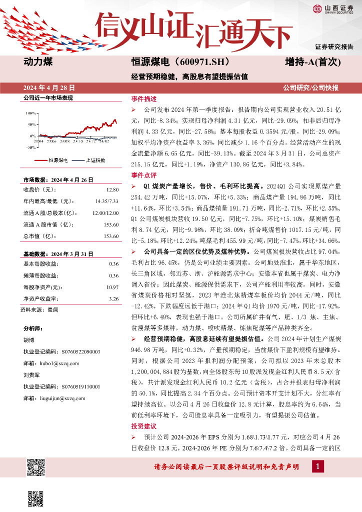 山西证券:恒源煤电(600971)-经营预期稳健,高股息有望提振估值.pdf