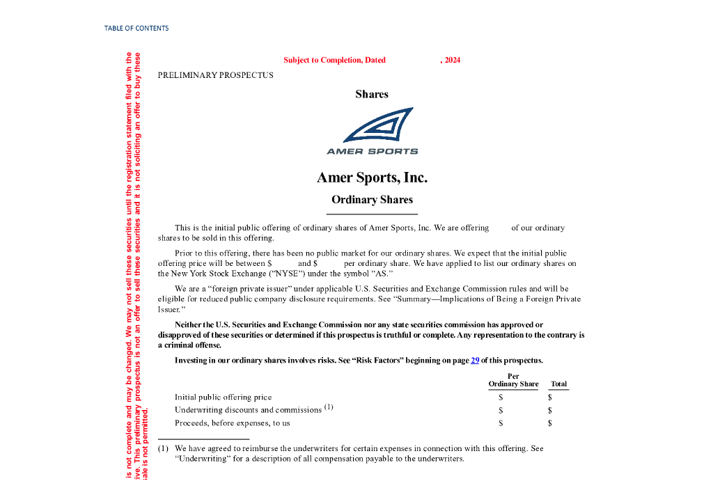 Amer Sports亚玛芬AS美股IPO上市招股说明书(英文版).pdf