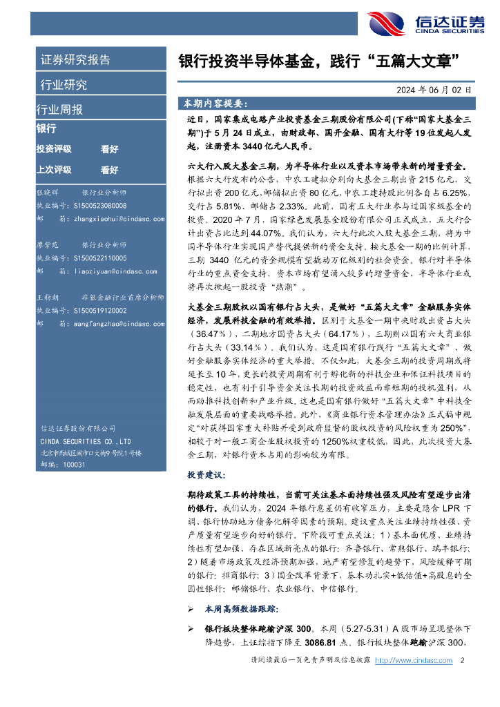 信达证券:银行行业周报:银行投资半导体基金,践行“五篇大文章”.pdf
