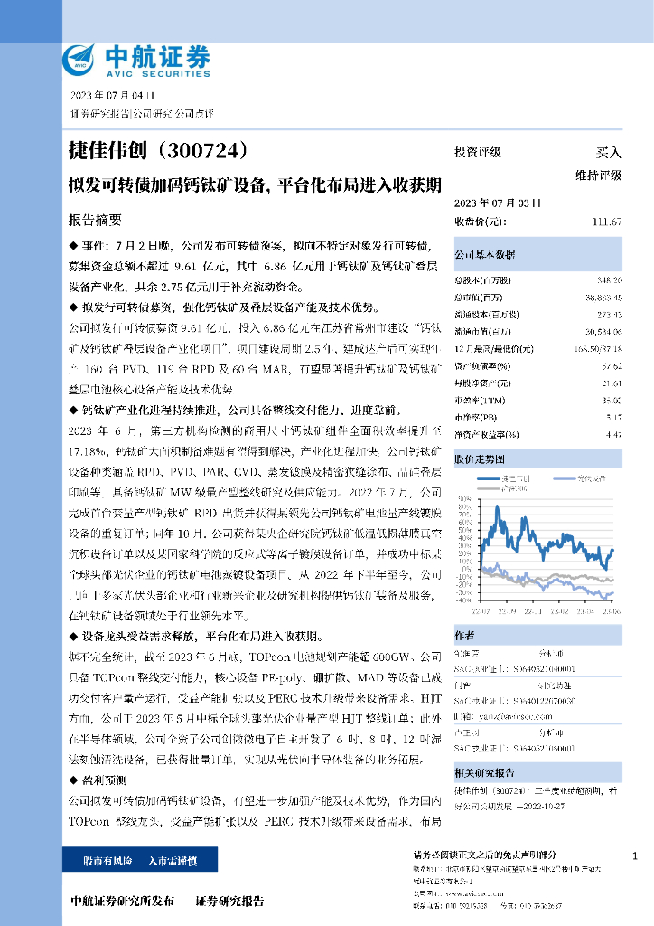 中航证券:捷佳伟创(300724)-拟发可转债加码钙钛矿设备,平台化布局进入收获期.pdf