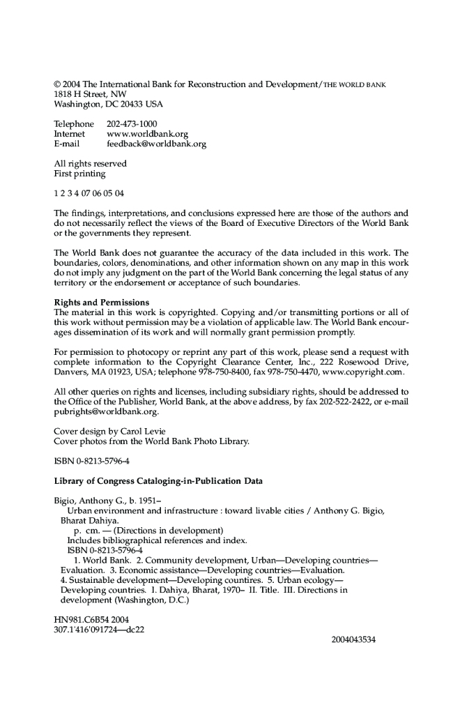 世界银行:发展方向报告-城市环境与基础设施:迈向宜居城市(英文版).pdf