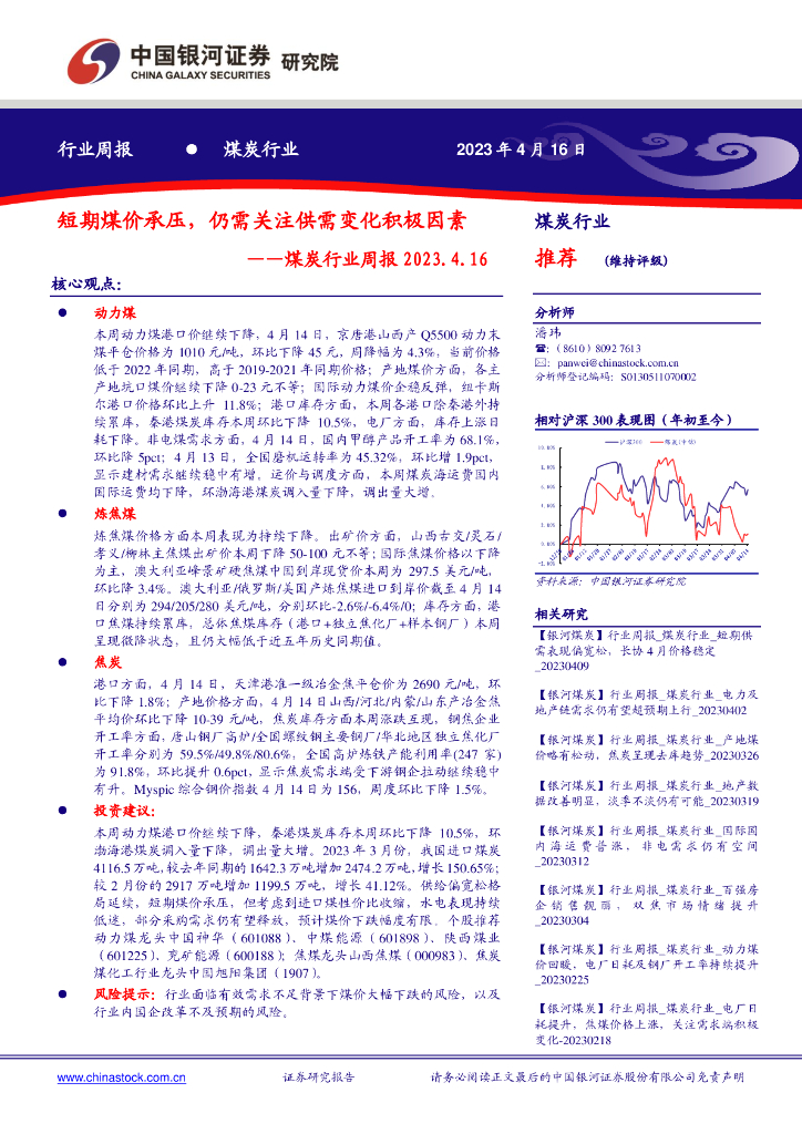 中国银河:煤炭行业周报:短期煤价承压,仍需关注供需变化积极因素.pdf