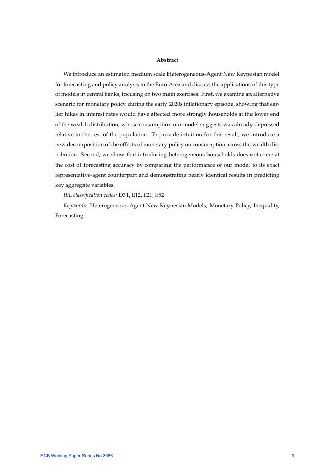 欧洲央行:超越平均值:欧元区HANK模型中货币政策的异质性效应(英文版).pdf